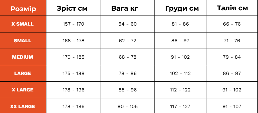 XS – XL (чоловічі / жіночі моделі)