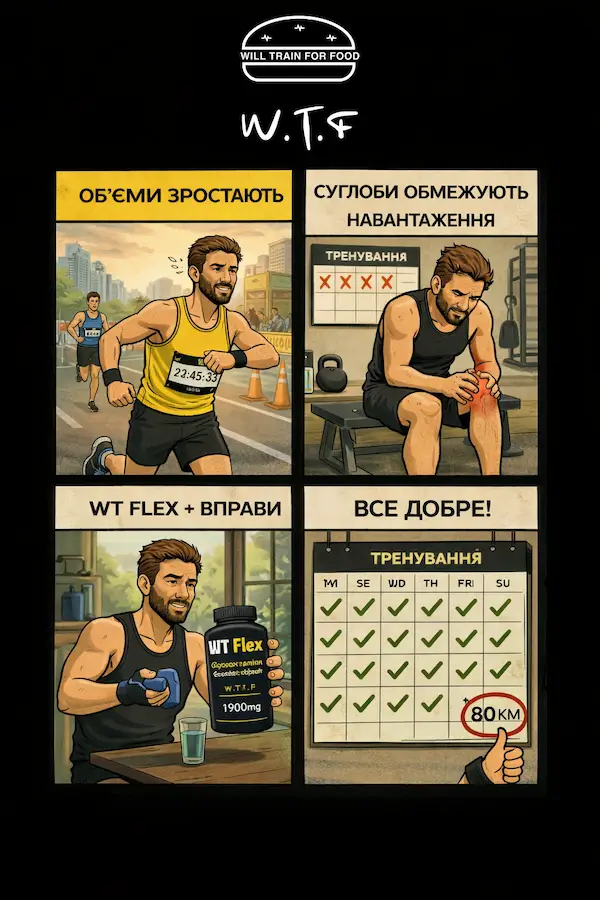 WT FLEX — формула для бігунів, велосипедистів, футболістів та спортсменів витривалих видів спорту, які регулярно дають ударне й обʼємне навантаження на коліна, гомілкостоп та інші суглоби.